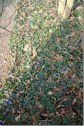 #268 The thorn branches entwined around the trees and bushes behind our house and fence.